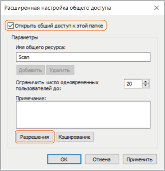 Установите флажок [Открыть общий доступ к этой папке] и щелкните [Разрешения].