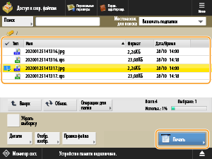 Если задать для параметра <Выбрать вариант при подсоедин. устр-ва памяти> значение <Вкл.> и установить устройство памяти USB, отобразится кнопка быстрого вызова <Печать с устр-ва памяти>. Нажмите кнопку <Печать с устр-ва памяти> и перейдите к шагу 4.