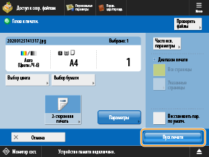 Установите режим печати на экране «Печать» и нажмите <Пуск печати>.