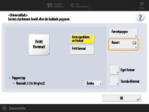 När du fyller på kuverten i universalfacket visas skärmen för inställning av pappersformat. Ställ in pappersformatet enligt följande.