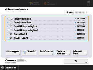 Kontrollera antalet ark som har kopierats/skrivits ut/skannats