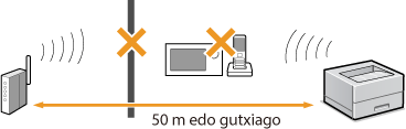 Egiaztatu makinaren eta hari gabeko routerraren edo sarbide-puntuaren instalazio lekua.