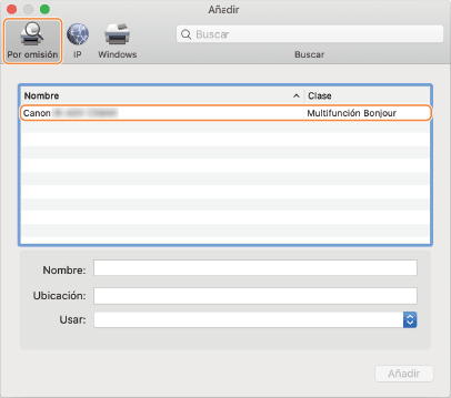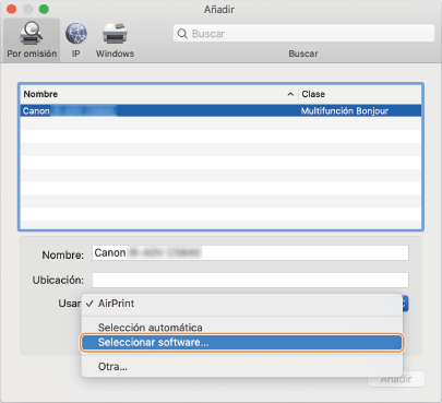 Seleccione una impresora que indique"Bonjour" en [Clase].