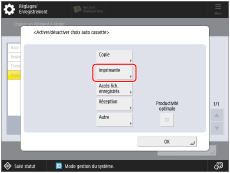 → [Réglages de fonction] → [Commun] → [Réglages alimentation papier] → [Activer/désactiver choix auto cassette].