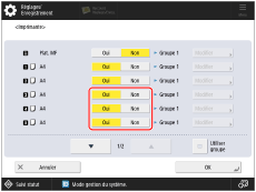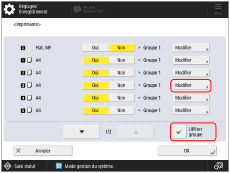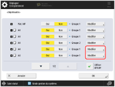 Sélectionner [Utiliser groupe] → appuyer sur [Modif.] pour l'alimentation papier