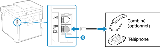 Lors de la connexion d’un téléphone externe ou d’un combiné en option : Connectez à
