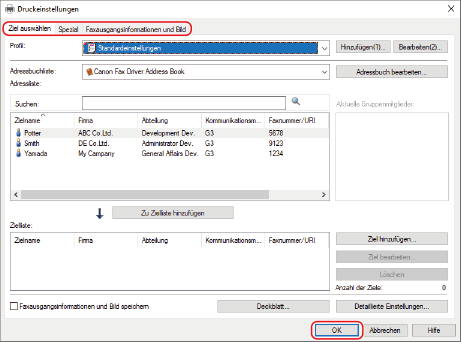 Die hier verwendeten Bildschirmabbildungen des Faxtreibers variieren abhängig vom Betriebssystem und der Faxtreiberversion möglicherweise von denen Ihres Bildschirms.