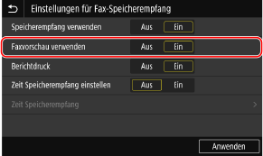 Wählen Sie <Ein> in <Faxvorschau verwenden> aus.