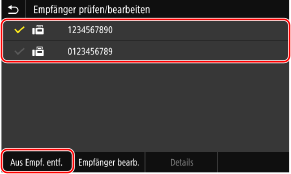 Wählen Sie die zu löschenden Empfänger aus, und wählen Sie <Aus Empf. entf.> aus.