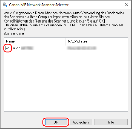 Wenn Sie das Gerät über Wireless LAN oder Wired LAN mit einem Computer verbinden, registrieren Sie das Gerät in "MF Network Scanner Selector".