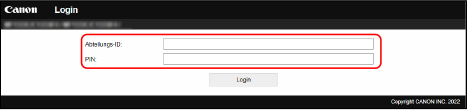 Geben Sie die registrierte [Abteilungs-ID] und [PIN] ein, und klicken Sie dann auf [Login].