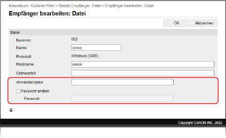 Einstellen von Zugriffseinschränkungen für einen gemeinsamen Ordner (Remote UI)
