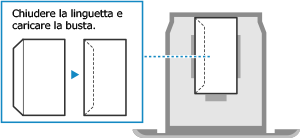 Caricare le buste in modo che il bordo con la linguetta sia rivolto verso il lato sinistro, con il lato anteriore (lato stampato) rivolto verso l’alto.