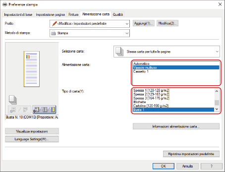 Successivamente, specificare il formato della carta e il tipo di carta.