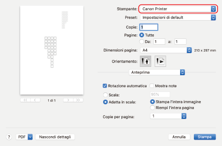 Fare clic su [Stampa] o [OK] nella finestra di stampa.