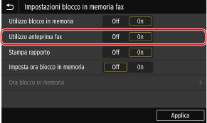 Selezionare <On> in <Utilizzo anteprima fax>.