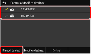 Selezionare le destinazioni da eliminare, e selezionare <Rimuovi da dest.>.