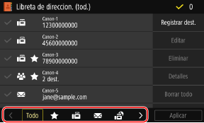 Para eliminar la selección de un destino, anule la selección del mismo. Cuando se seleccionen varios destinos, puede deseleccionarlos todos juntos mediante <Borrar todo>.