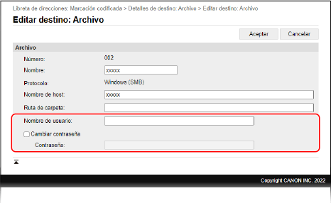 Permita que solo los usuarios configurados puedan escanear y enviar datos a una carpeta compartida.