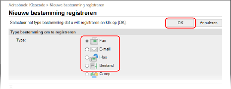 Selecteer het type bestemming dat u wilt registreren en klik op [OK].