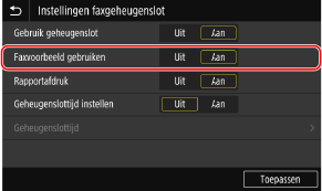 Selecteer <Aan> in <Faxvoorbeeld gebruiken>.
