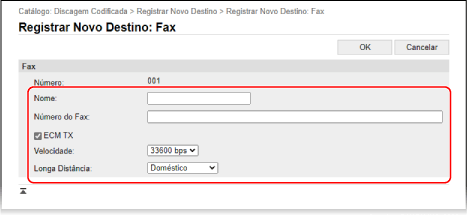 Para registar ou editar um destino de fax,