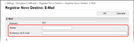 Para registar um novo destino, clique no número para o qual "Não registado" está especificado em [Nome] e, em seguida, avance para o passo 8.