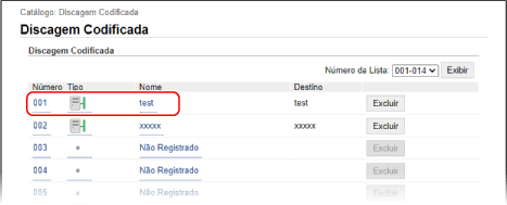 Para registar um novo destino, clique no número para o qual "Não Registrado" está especificado em [Nome] e, em seguida, avance para o passo 7.