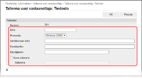 FTP-palvelimen kohteen rekisteröiminen osoitekirjaan (etäkäyttöliittymä)
