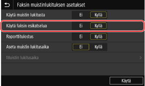 Valitse <Kyllä> kohdassa <Käytä muistin lukitusta>.