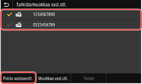 Kun <Vahvista vastaanottaja> ‑näyttö tulee esiin, tarkista, että kohteet ovat oikein, ja valitse <Käynn. skannaus>.