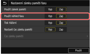 Vyberte možnost <Zap> v položce <Použít náhled faxu>.