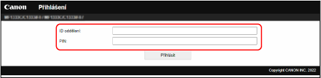 Zadejte registrované [ID oddělení] a [PIN] a pak klikněte na [Přihlásit].