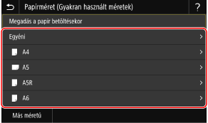 Ha a behelyezett papír mérete nem jelenik meg, válassza ki a <Más méretű> lehetőséget.