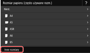 Jeśli rozmiar załadowanego papieru nie jest wyświetlany, wybierz <Inne rozmiary>.