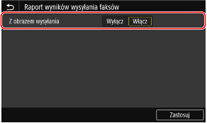 Jeśli chcesz, aby część przesyłanego oryginału znalazła się w raporcie wyników transmisji, wybierz <Włącz> dla <Z obrazem wysyłania>.