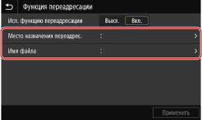Выберите <Вкл.> в <Исп. функцию переадресации>.