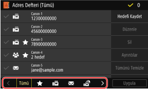 Adres Defteri'ne kayıtlı çok sayıda hedef olması, belirli bir hedefi bulmayı zorlaştırır. Sık kullanılan bir hedefi favori olarak belirtirseniz bu hedefi Adres Defteri'nde <