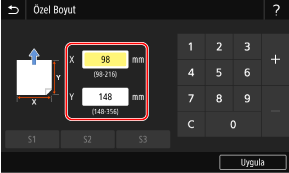 Yüklenen kağıdın kağıt boyutu görüntülenmiyorsa <Diğer Boyutlar> öğesini seçin.