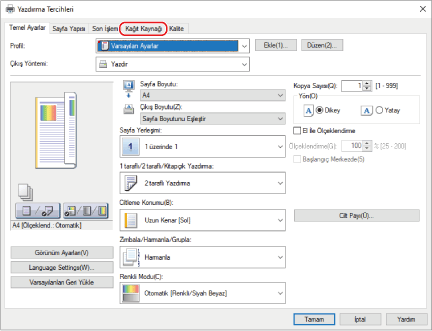 2. Adım: Kağıt boyutunu ve kağıt türünü belirtme