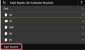 Yüklenen kağıdın kağıt boyutu görüntülenmiyorsa <Diğer Boyutlar> öğesini seçin.