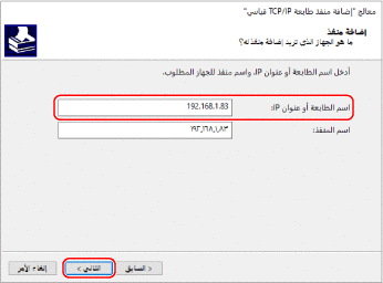 أدخل عنوان IP أو اسم DNS الخاص بالجهاز، ثم انقر فوق [التالي].