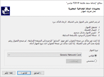 إذا قمت بتغيير عنوان IP الخاص بالجهاز أو أضفت طابعة، فقد يحدث خطأ وقد لا تكون الطباعة ممكنة.