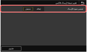 إذا كنت ترغب في تضمين جزء من المستند الأصلي المرسَل في تقرير نتيجة الإرسال، فحدد <تشغيل> لـ <تضمين صورة الإرسال>.