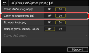 Επιλέξτε <On> στην <Χρήση κλειδώματος μνήμης>.