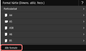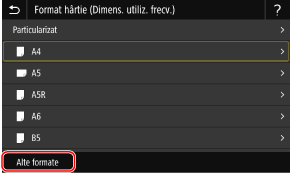 Dacă formatul hârtiei încărcate nu este afișat, selectați <Alte formate>.