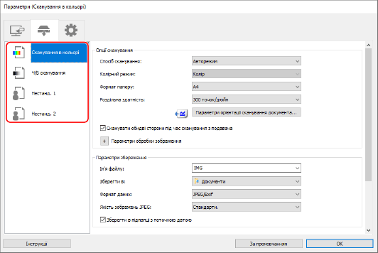 Налаштовувані параметри сканування, які часто використовуються, можна зареєструвати в пункті [Настроюване сканування].