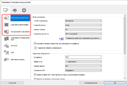 Можна використовувати програму MF Scan Utility (Утиліта для сканування MF) для визначення параметрів, як-от орієнтації оригіналу під час сканування та формату файлу під час збереження.