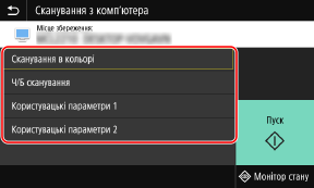 Виберіть [Сканування документів], [Сканування фотографій] або [Настроюване сканування].