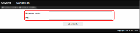 Saisissez le [Numéro de service] et le [PIN] enregistrés, puis cliquez sur [Se connecter].